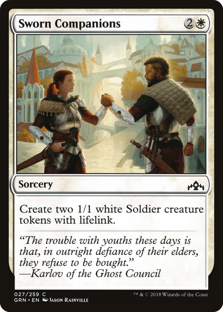 Create two 1/1 white Soldier creature tokens with lifelink.