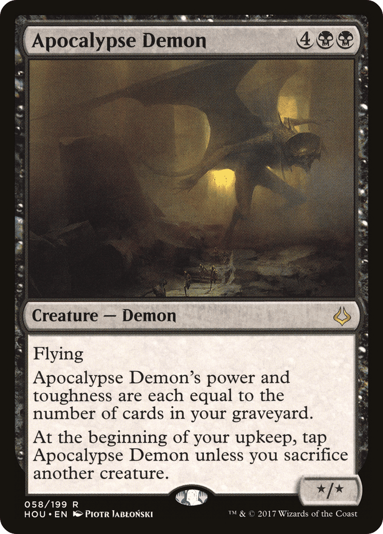 Apocalypse Demon’s power and toughness are each equal to the number of cards in your graveyard.