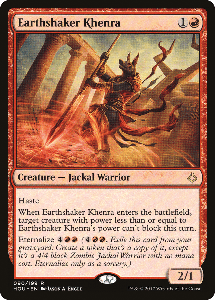 Eternalize {4}{R}{R} ({4}{R}{R}, Exile this card from your graveyard: Create a token that’s a copy of it, except it’s a 4/4 blac