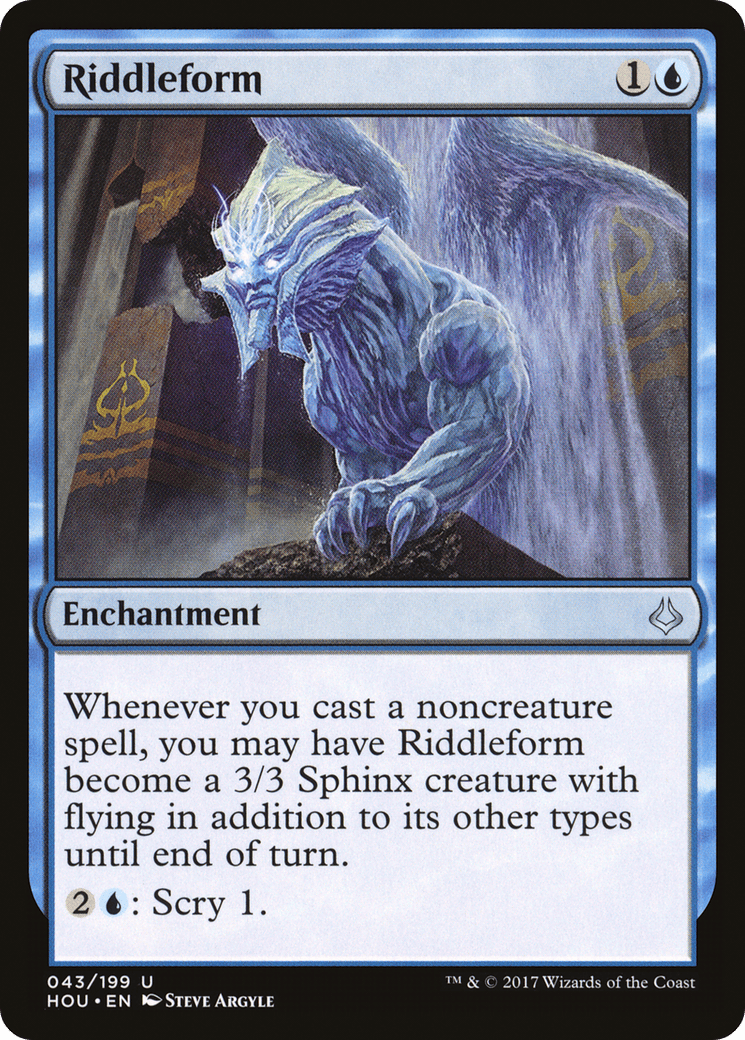 Whenever you cast a noncreature spell, you may have this enchantment become a 3/3 Sphinx creature with flying in addition to its other types until end of turn.