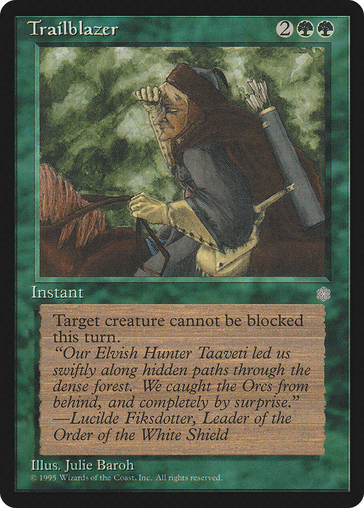 Target creature can’t be blocked this turn.