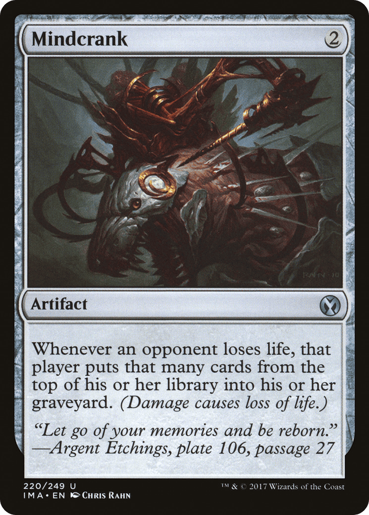 Whenever an opponent loses life, that player mills that many cards. (Damage causes loss of life.)