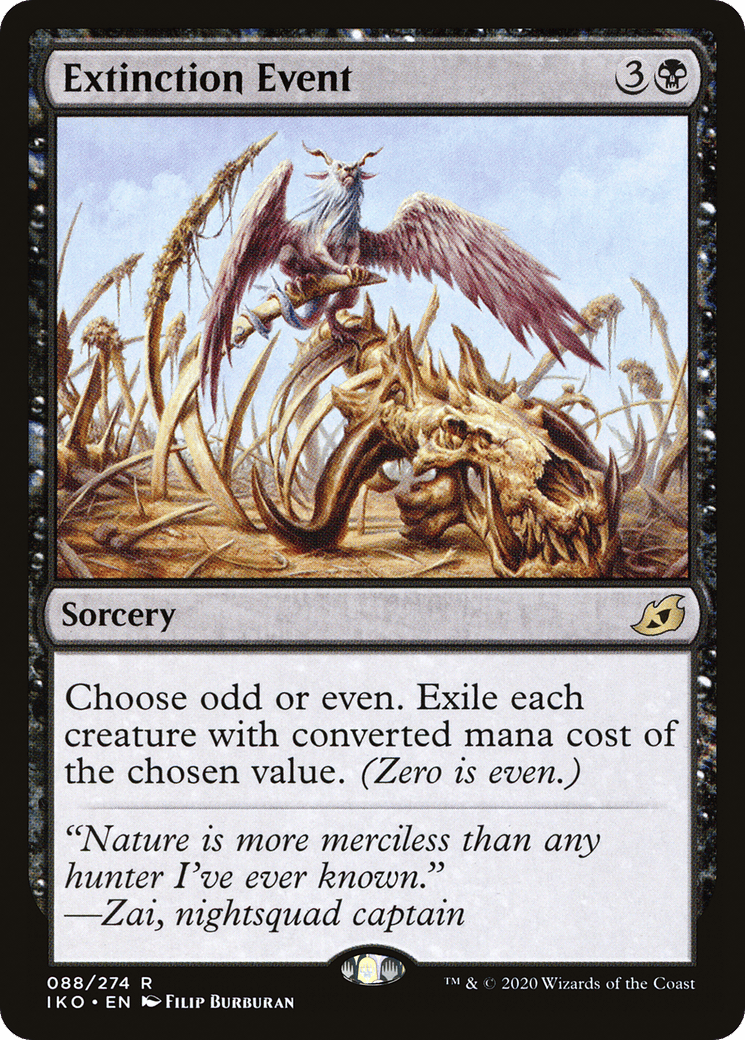 Choose odd or even. Exile each creature with mana value of the chosen quality. (Zero is even.)