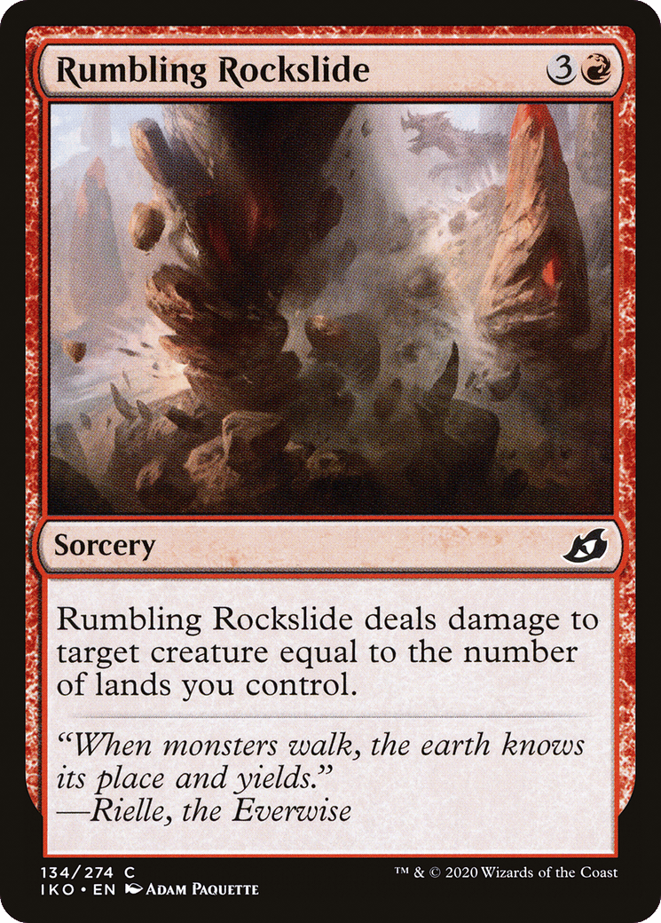 Rumbling Rockslide deals damage to target creature equal to the number of lands you control.
