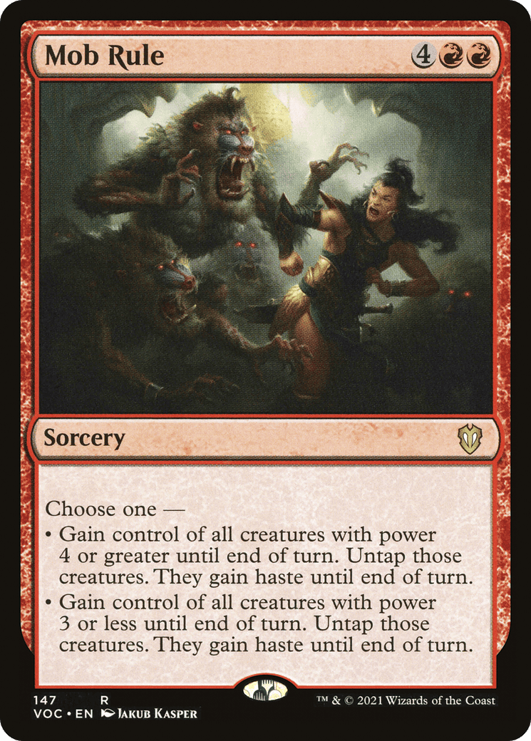 – Gain control of all creatures with power 4 or greater until end of turn. Untap those creatures. They gain haste until end of turn.
