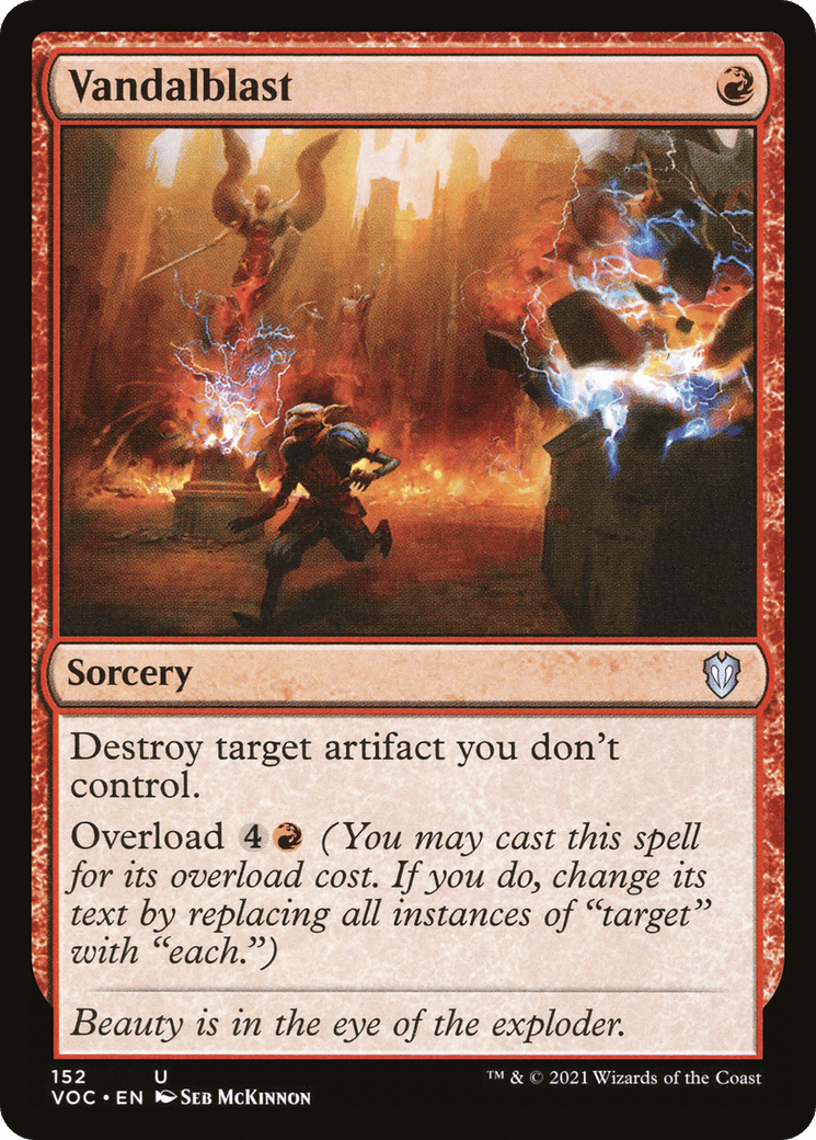 Overload {4}{R} (You may cast this spell for its overload cost. If you do, change “target” in its text to “each.”)