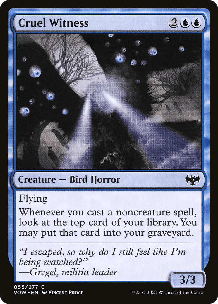 Whenever you cast a noncreature spell, surveil 1. (Look at the top card of your library. You may put it into your graveyard.)