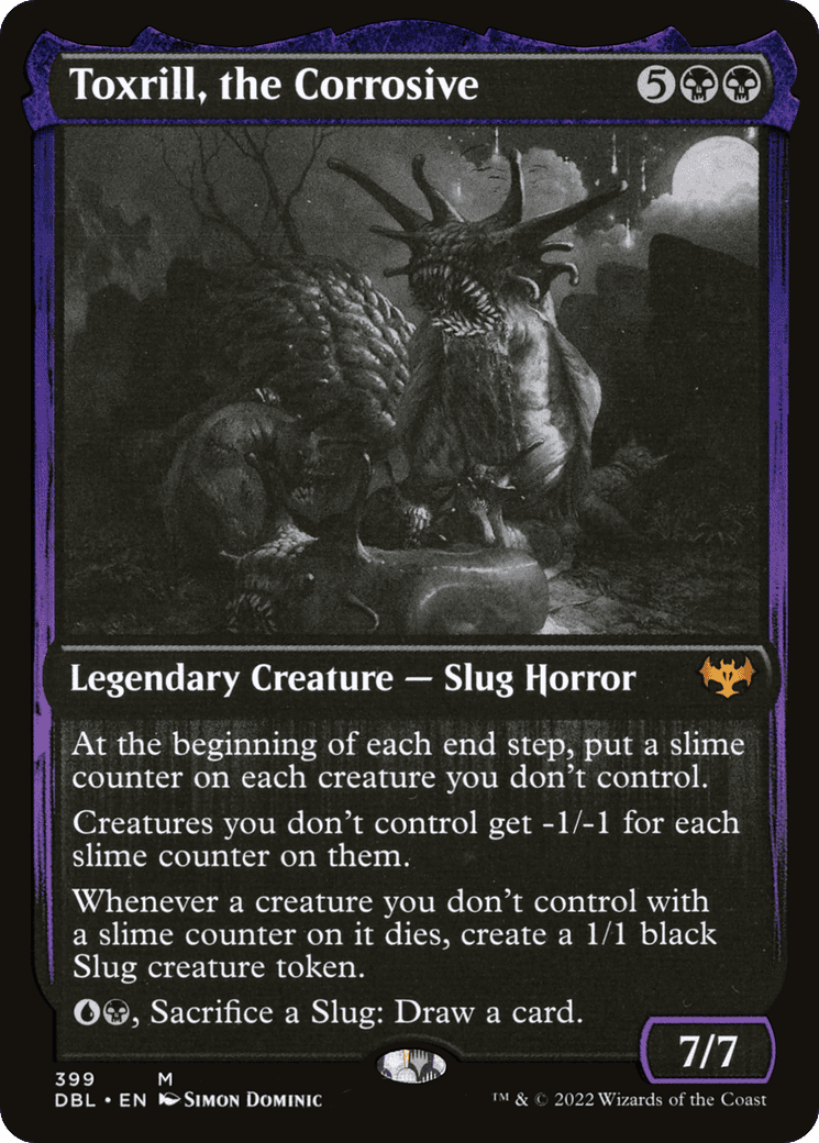 Whenever a creature you don’t control with a slime counter on it dies, create a 1/1 black Slug