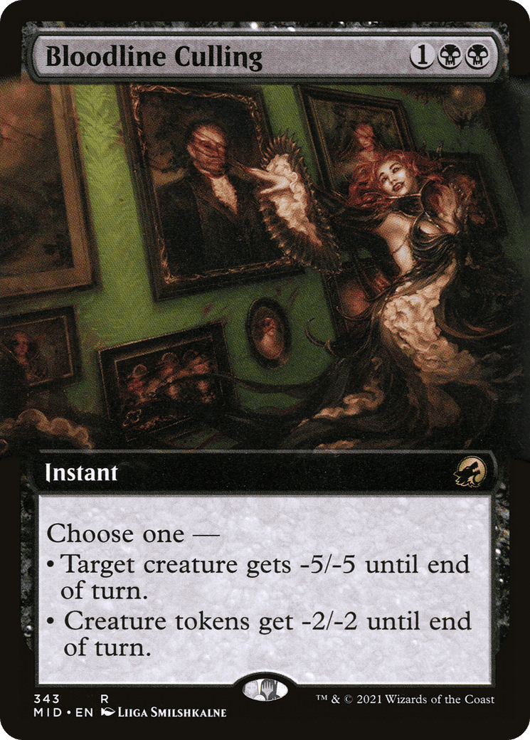 Choose one – – Target creature gets -5/-5 until end of turn. – Creature tokens get -2/-2 until end of turn.