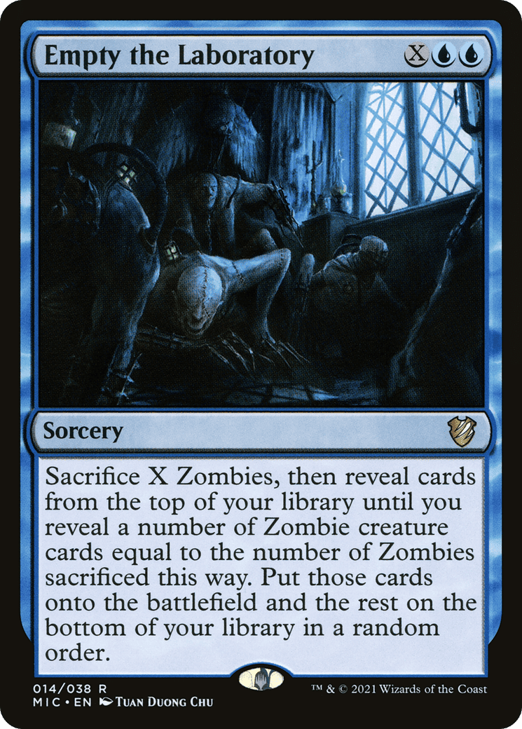 Sacrifice X Zombies, then reveal cards from the top of your library until you reveal a number of Zombie creature cards equal to the number of Zombies sacrificed this way. Put those cards onto the battlefield and the rest on the bottom of your library in a