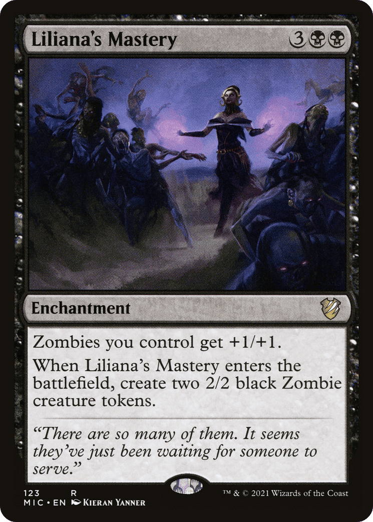 When this enchantment enters, create two 2/2 black Zombie creature tokens.