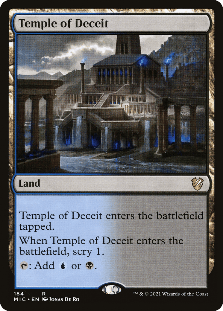 This land enters tapped. When this land enters, scry 1. (Look at the top card of your library. You may put that card on the bottom.) {T}: Add {U} or {B}.