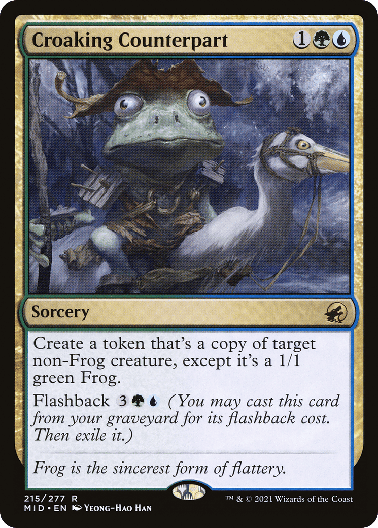 Create a token that’s a copy of target non-Frog creature, except it’s a 1/1 green Frog.