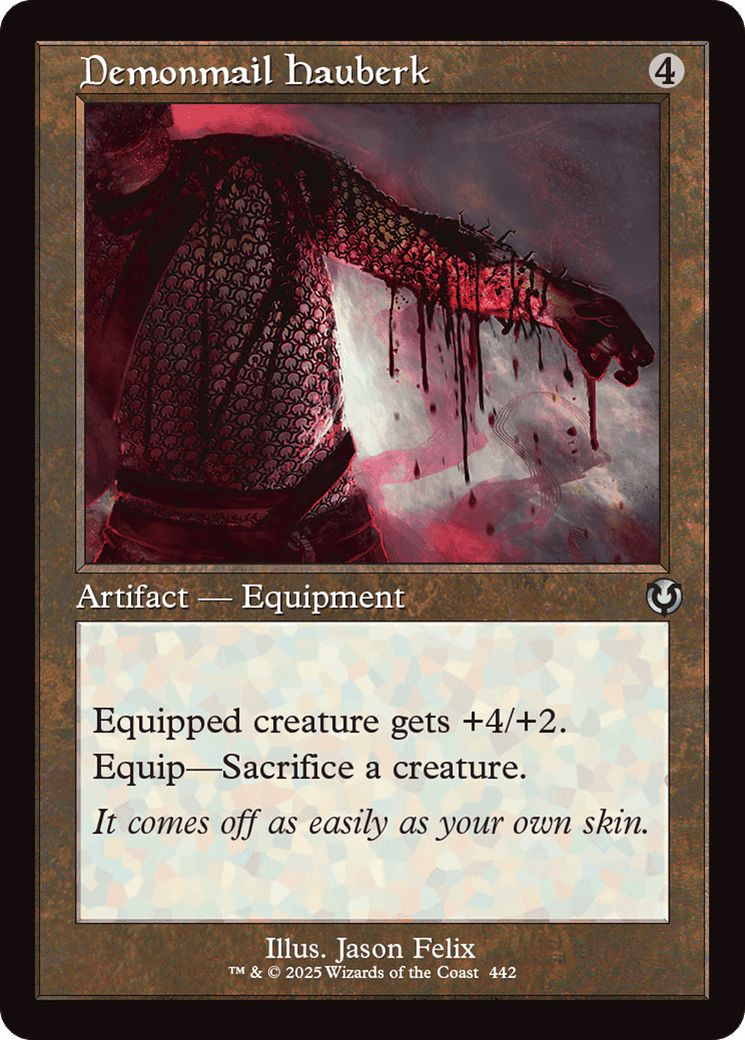 Equipped creature gets +4/+2. Equip-Sacrifice a creature.