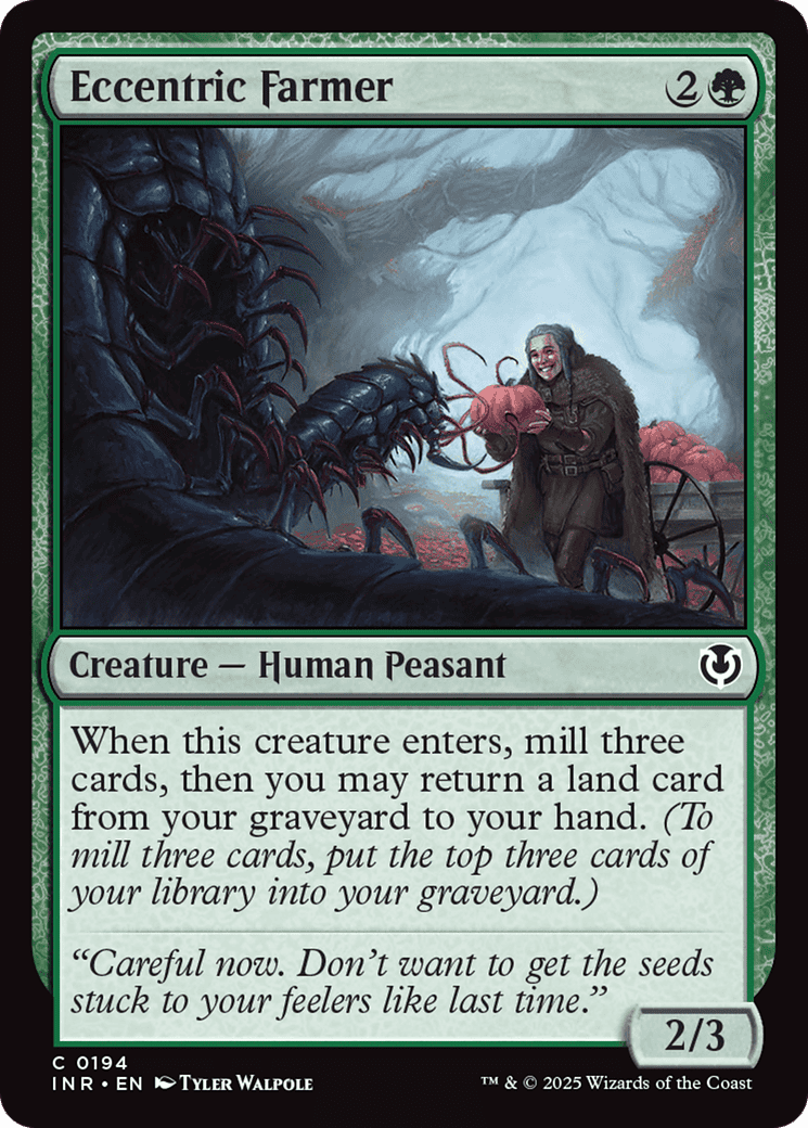 When this creature enters, mill three cards, then you may return a land card from your graveyard to your hand. (To mill three cards, put the top three cards of your library into your graveyard.)