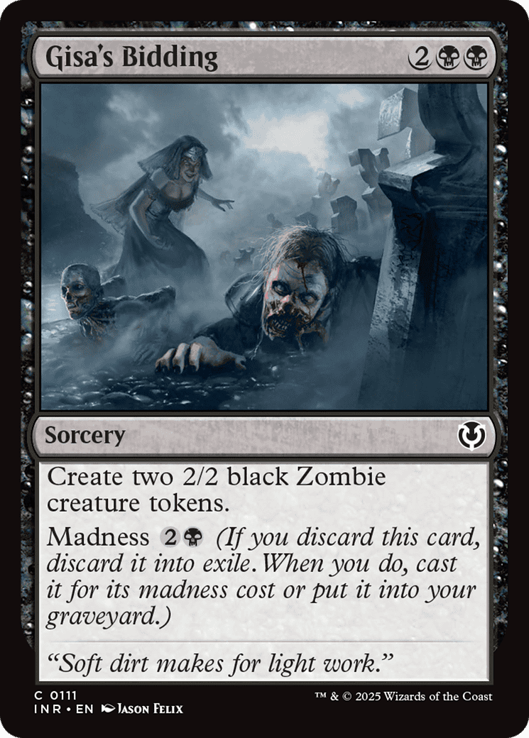 Madness {2}{B} (If you discard this card, discard it into exile. When you do, cast it for its madness cost or put it into your graveyard.)