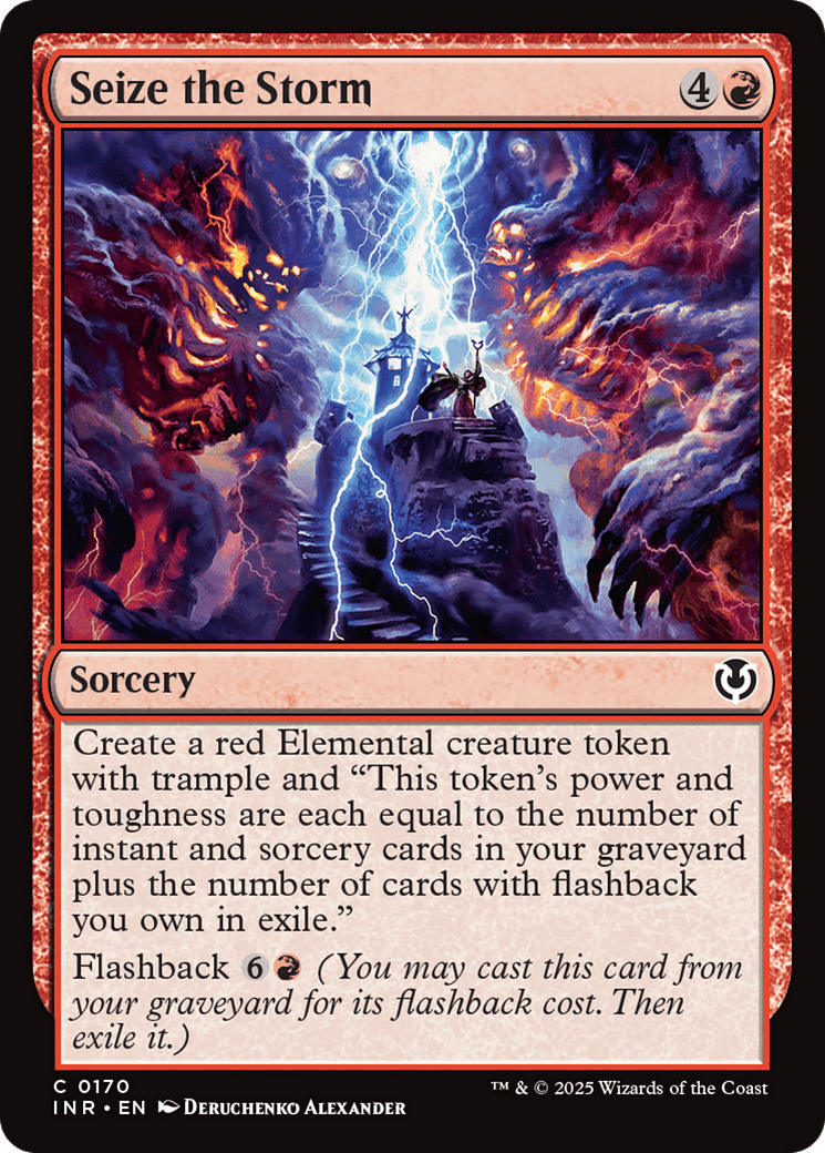 Create a red Elemental creature token with trample and “This token’s power and toughness are each equal to the number of instant and sorcery cards in your graveyard plus the number of cards with flashback you own in exile.”