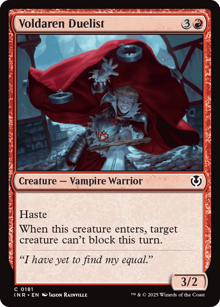 Haste When this creature enters, target creature can’t block this turn.