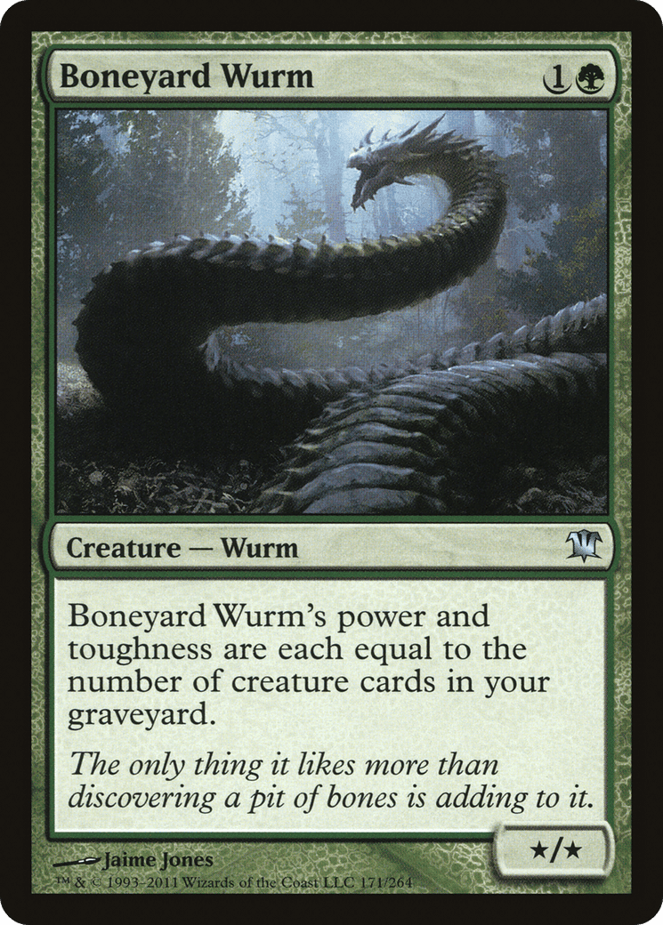 Boneyard Wurm’s power and toughness are each equal to the number of creature cards in your graveyard.
