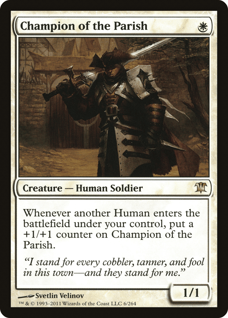 Whenever another Human you control enters, put a +1/+1 counter on this creature.