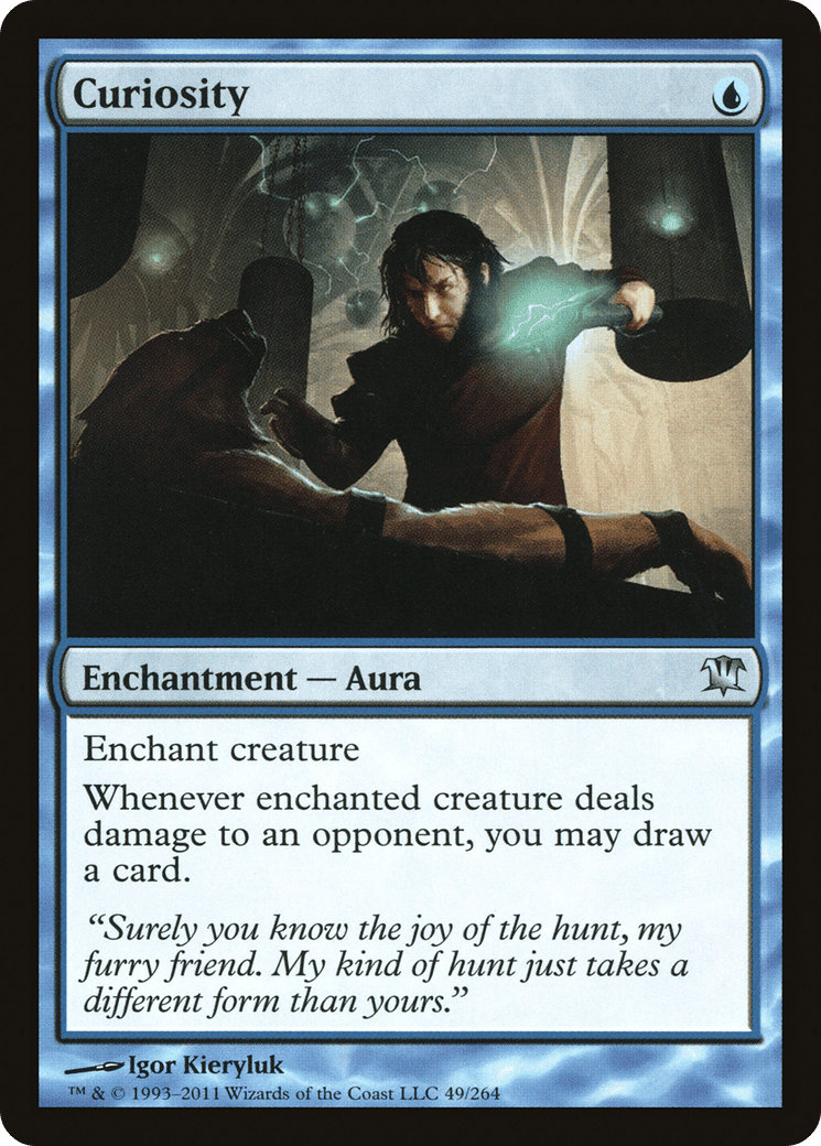 Whenever enchanted creature deals damage to an opponent, you may draw a card.