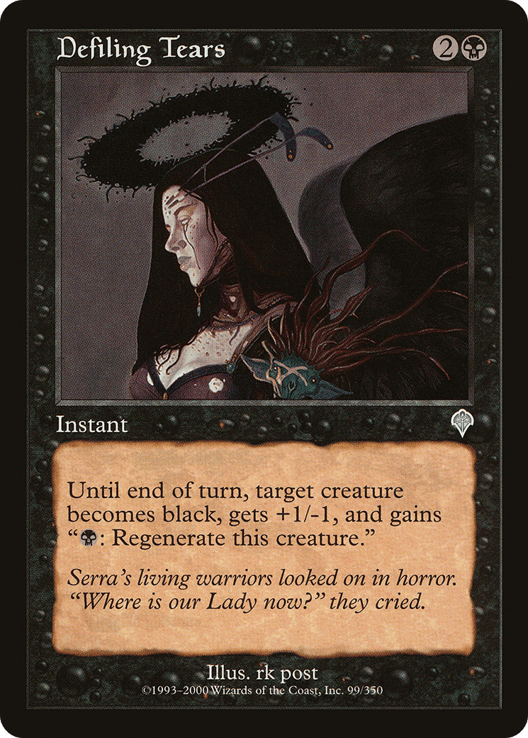 Until end of turn, target creature becomes black, gets +1/-1, and gains “{B}: Regenerate this creature.”