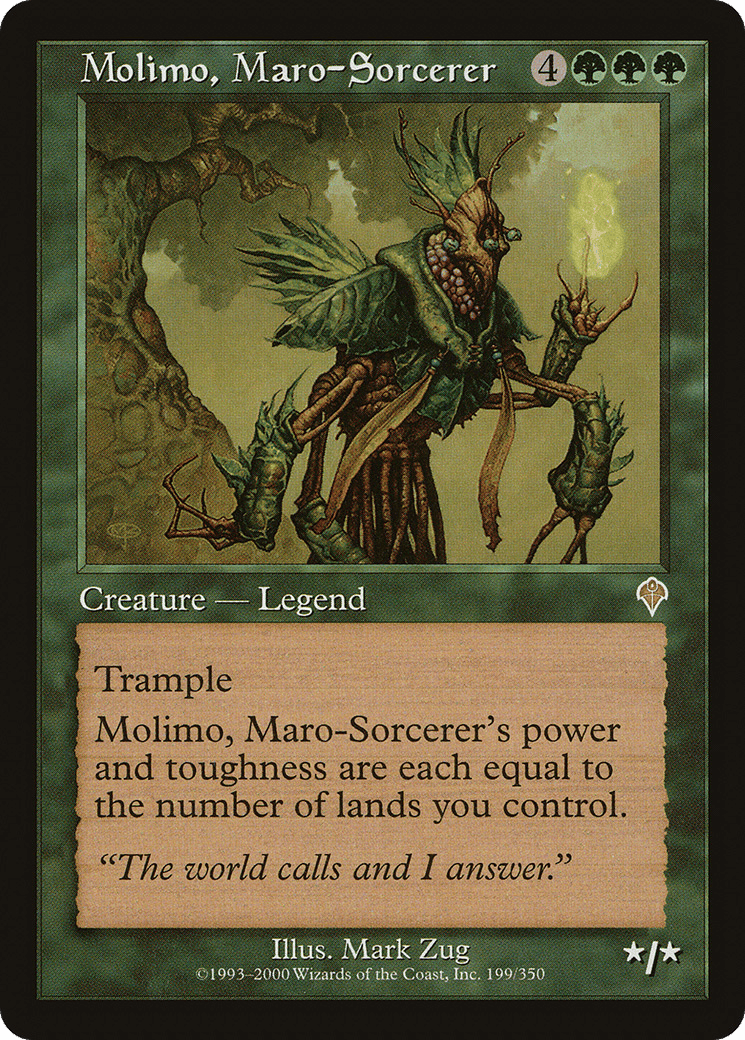 Molimo’s power and toughness are each equal to the number of lands you control.