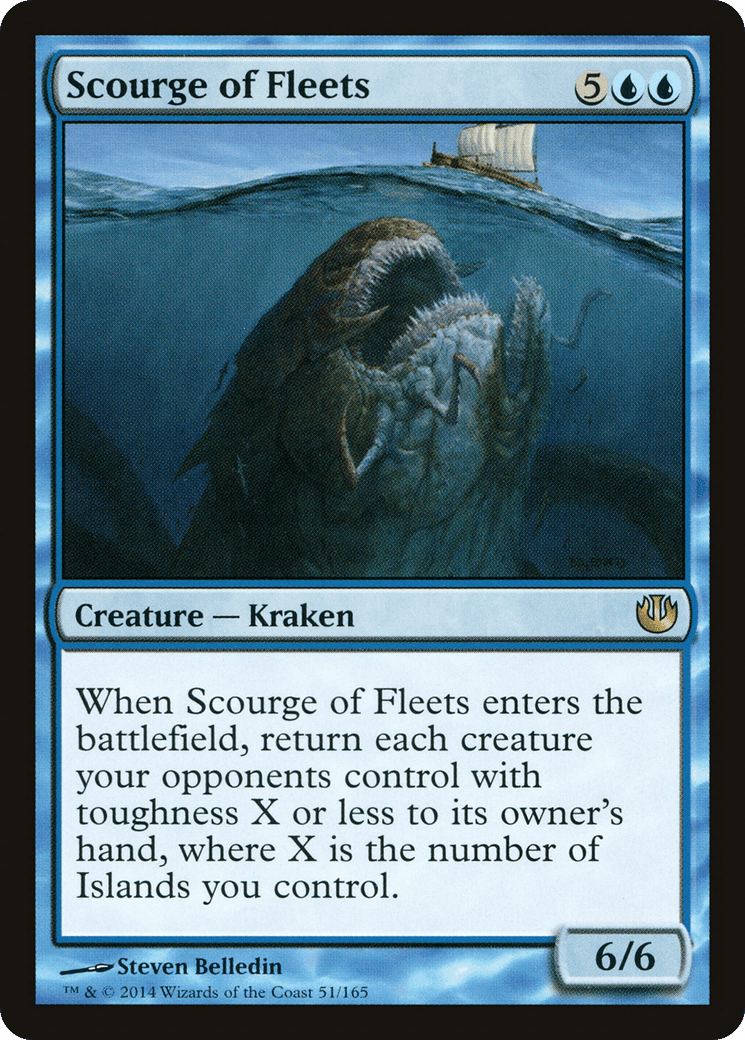 When this creature enters, return each creature your opponents control with toughness X or less to its owner’s hand, where X is the number of Islands you control.