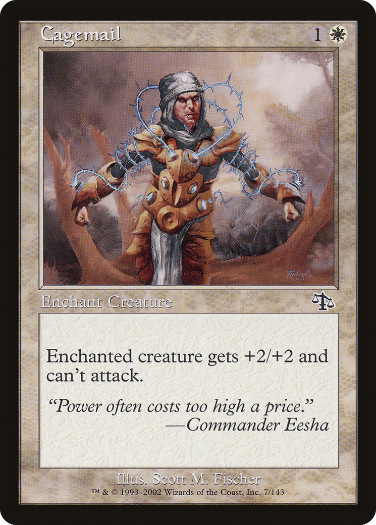 Enchant creature Enchanted creature gets +2/+2 and can’t attack.