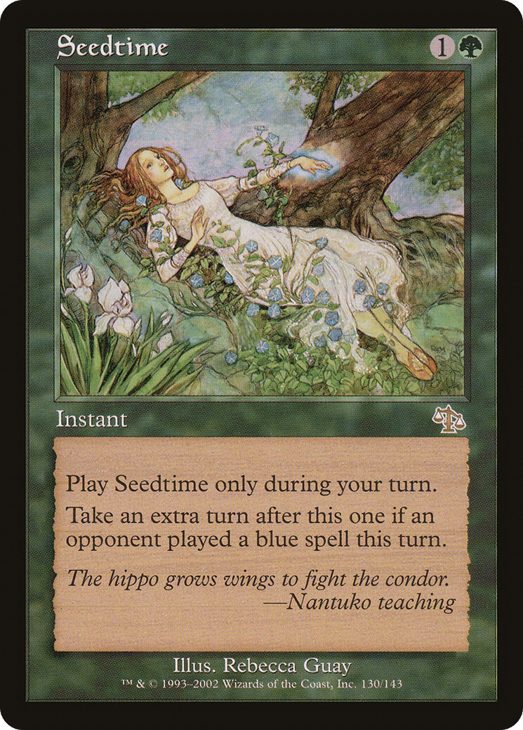 Cast this spell only during your turn. Take an extra turn after this one if an opponent cast a blue spell this turn.