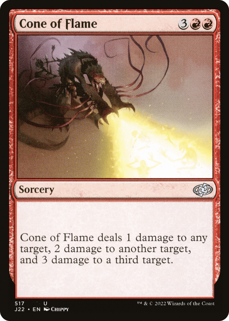 Cone of Flame deals 1 damage to any target, 2 damage to another target, and 3 damage to a third target.