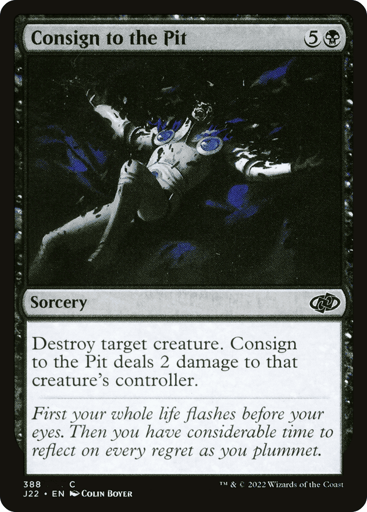 Destroy target creature. Consign to the Pit deals 2 damage to that creature’s controller.