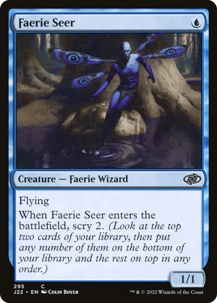 Flying When this creature enters, scry 2. (Look at the top two cards of your library, then put any number of them on the bottom and the rest on top in any order.)