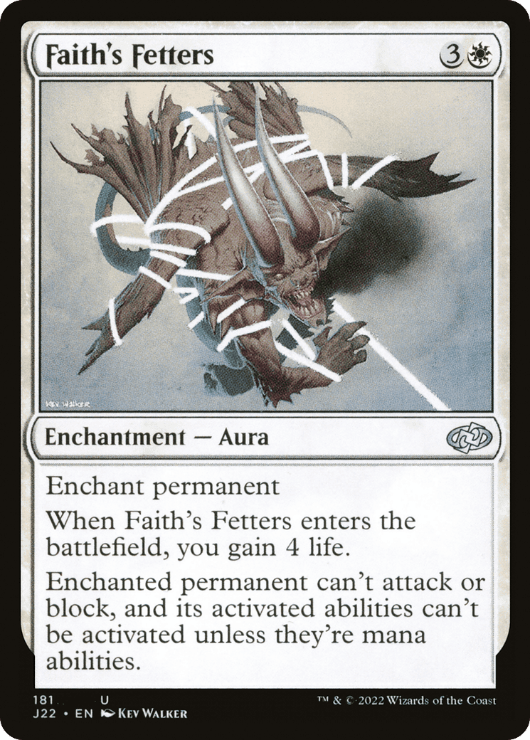 Enchanted permanent can’t attack or block, and its activated abilities can’t be activated unless they’re mana abilities.