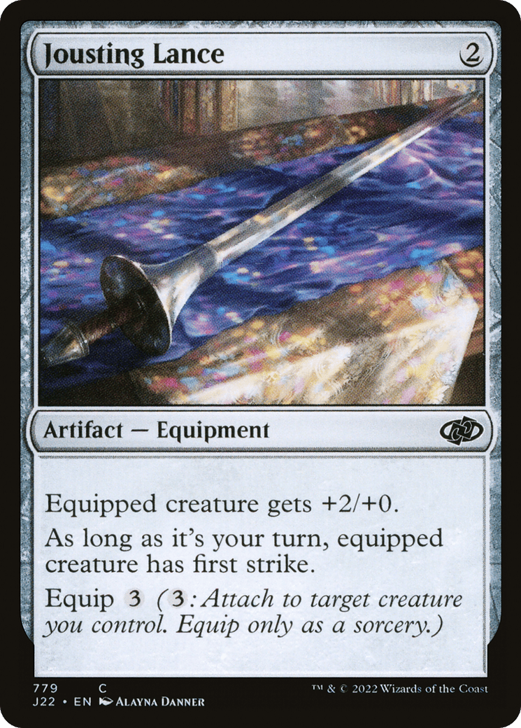 Equipped creature gets +2/+0. During your turn, equipped creature has first strike. Equip {3} ({3}: Attach to target creature you control. Equip only as a sorcery.)