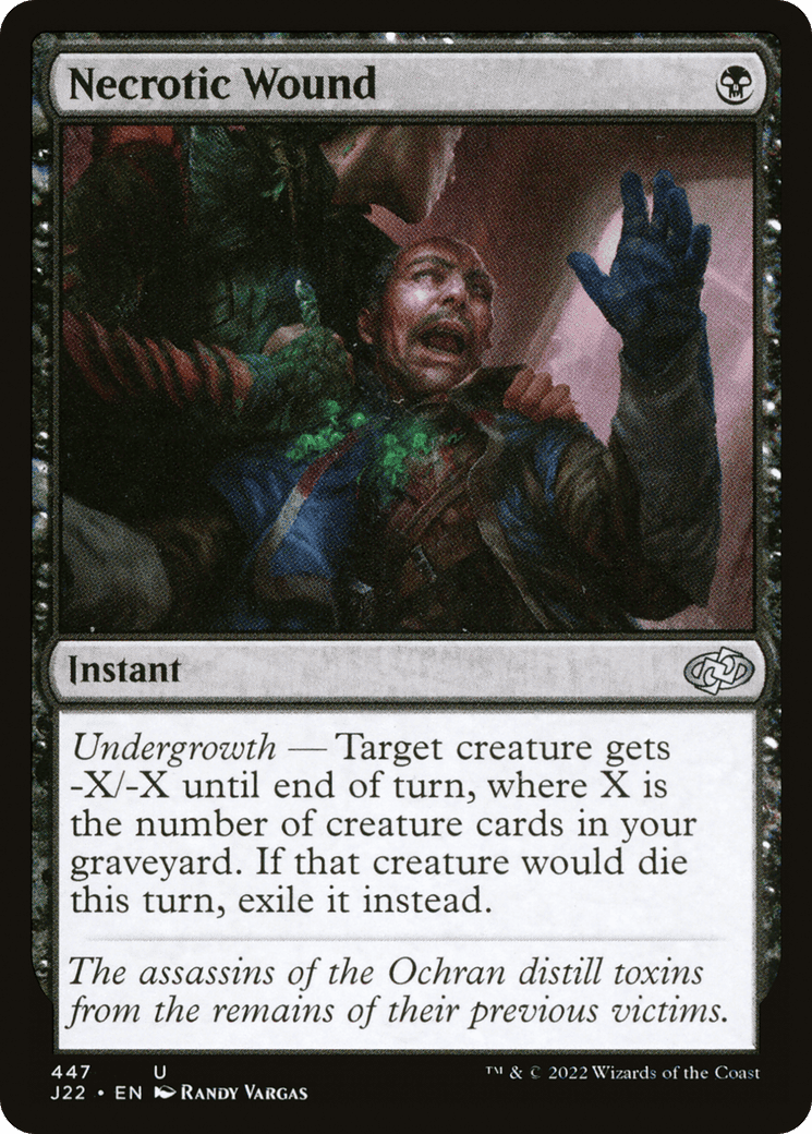 Undergrowth – Target creature gets -X/-X until end of turn, where X is the number of creature cards in your graveyard. If that creature would die this turn, exile it instead.