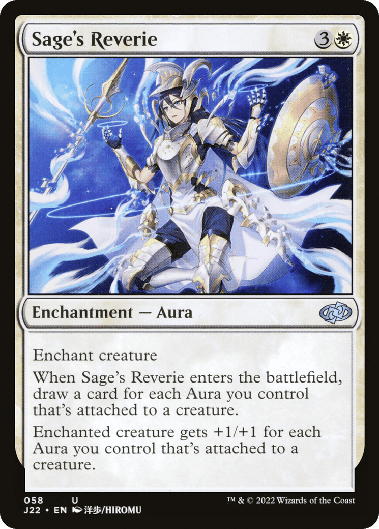 When this Aura enters, draw a card for each Aura you control that’s attached to a creature.