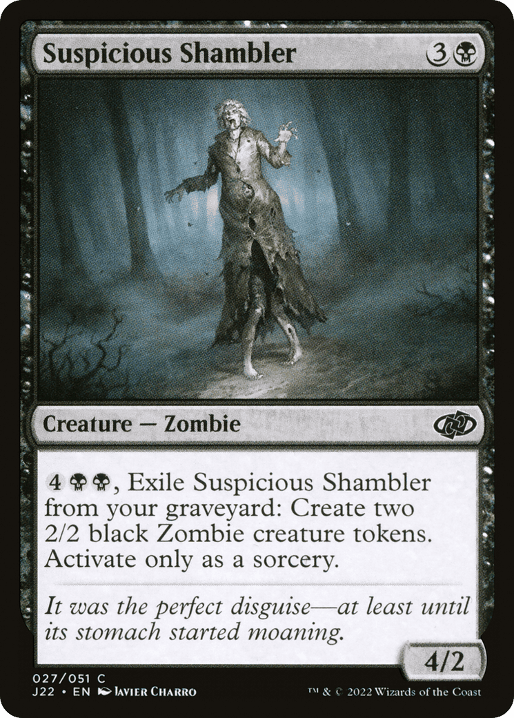 {4}{B}{B}, Exile this card from your graveyard: Create two 2/2 black Zombie creature tokens. Activate only as a sorcery.