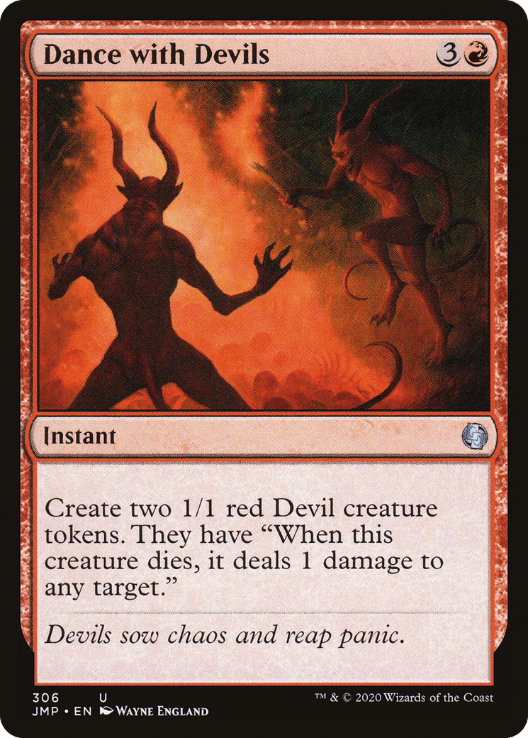 Create two 1/1 red Devil creature tokens. They have “When this token dies, it deals 1 damage to any target.”