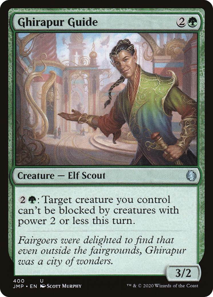 {2}{G}: Target creature you control can’t be blocked by creatures with power 2 or less this turn.