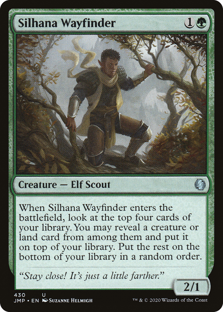 When this creature enters, look at the top four cards of your library. You may reveal a creature or land card from among them and put it on top of your library. Put the rest on the bottom of your library in a random order.