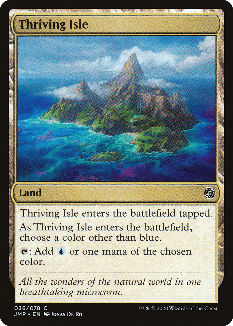 This land enters tapped. As it enters, choose a color other than blue. {T}: Add {U} or one mana of the chosen color.