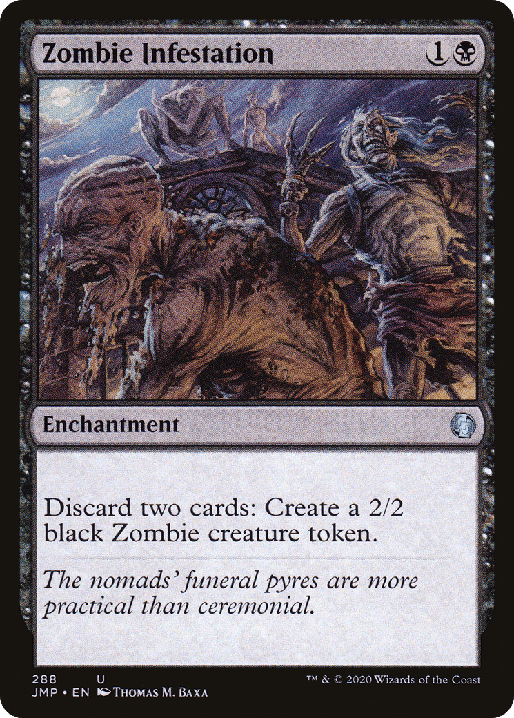 Discard two cards: Create a 2/2 black Zombie creature token.