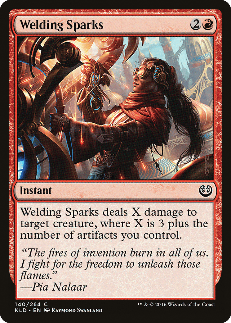 Welding Sparks deals X damage to target creature, where X is 3 plus the number of artifacts you control.