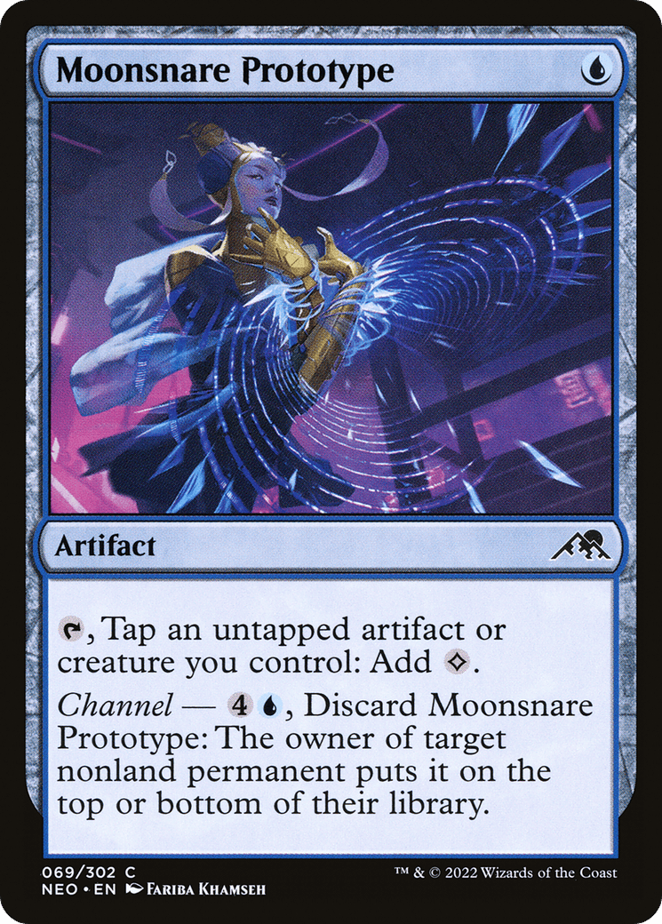 Channel – {4}{U}, Discard this card: The owner of target nonland permanent puts it on their choice of the top or bottom of their library.