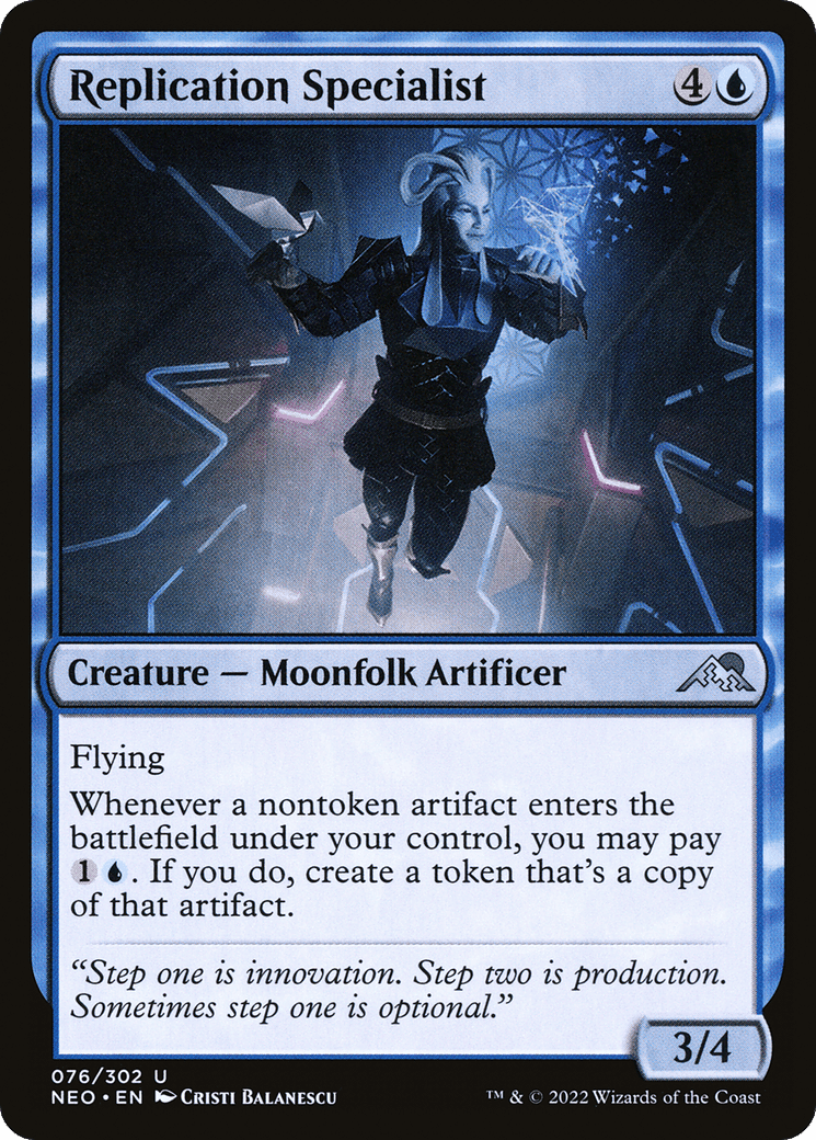 Whenever a nontoken artifact you control enters, you may pay {1}{U}. If you do, create a token that’s a copy of that artifact.