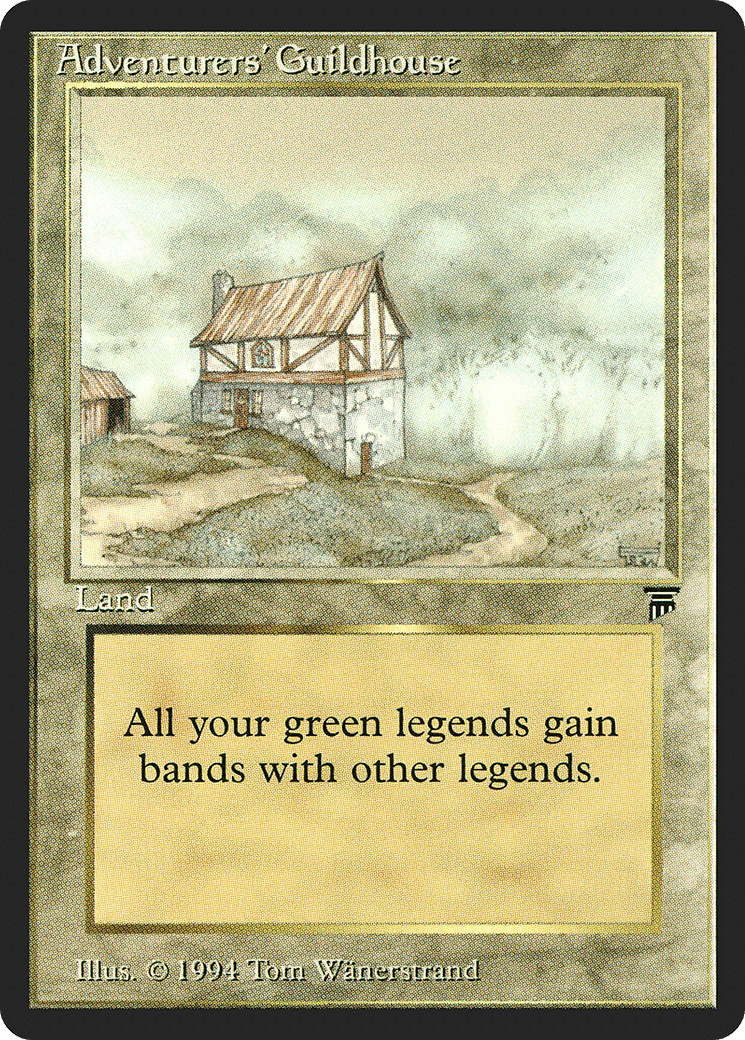 Green legendary creatures you control have “bands with other legendary creatures.” (Any legendary creatures can attack in a band as long as at least one has “bands with other legendary creatures.” Bands are blocked as a group. If at least two legendary cr