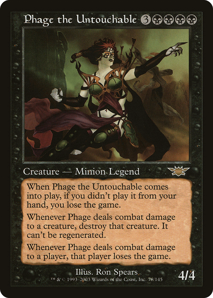 Whenever Phage deals combat damage to a player, that player loses the game.