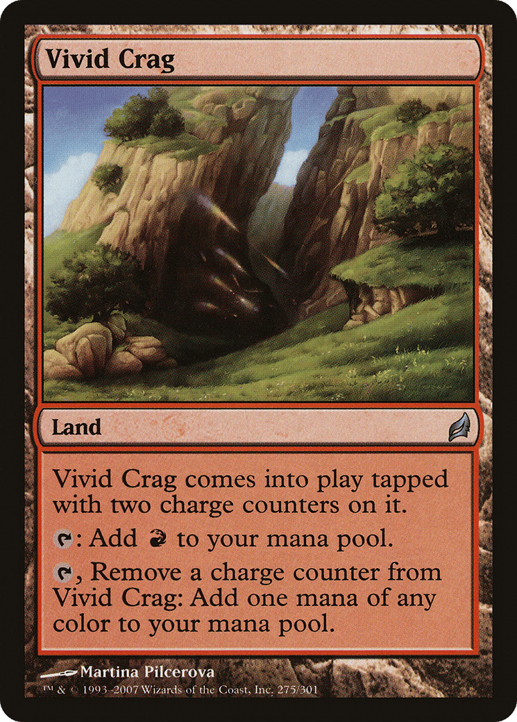 This land enters tapped with two charge counters on it. {T}: Add {R}. {T}, Remove a charge counter from this land: Add one mana of any color.