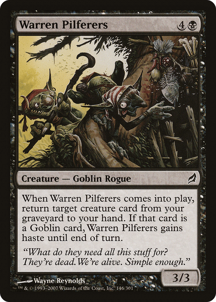 When this creature enters, return target creature card from your graveyard to your hand. If that card is a Goblin card, this creature gains haste until end of turn.